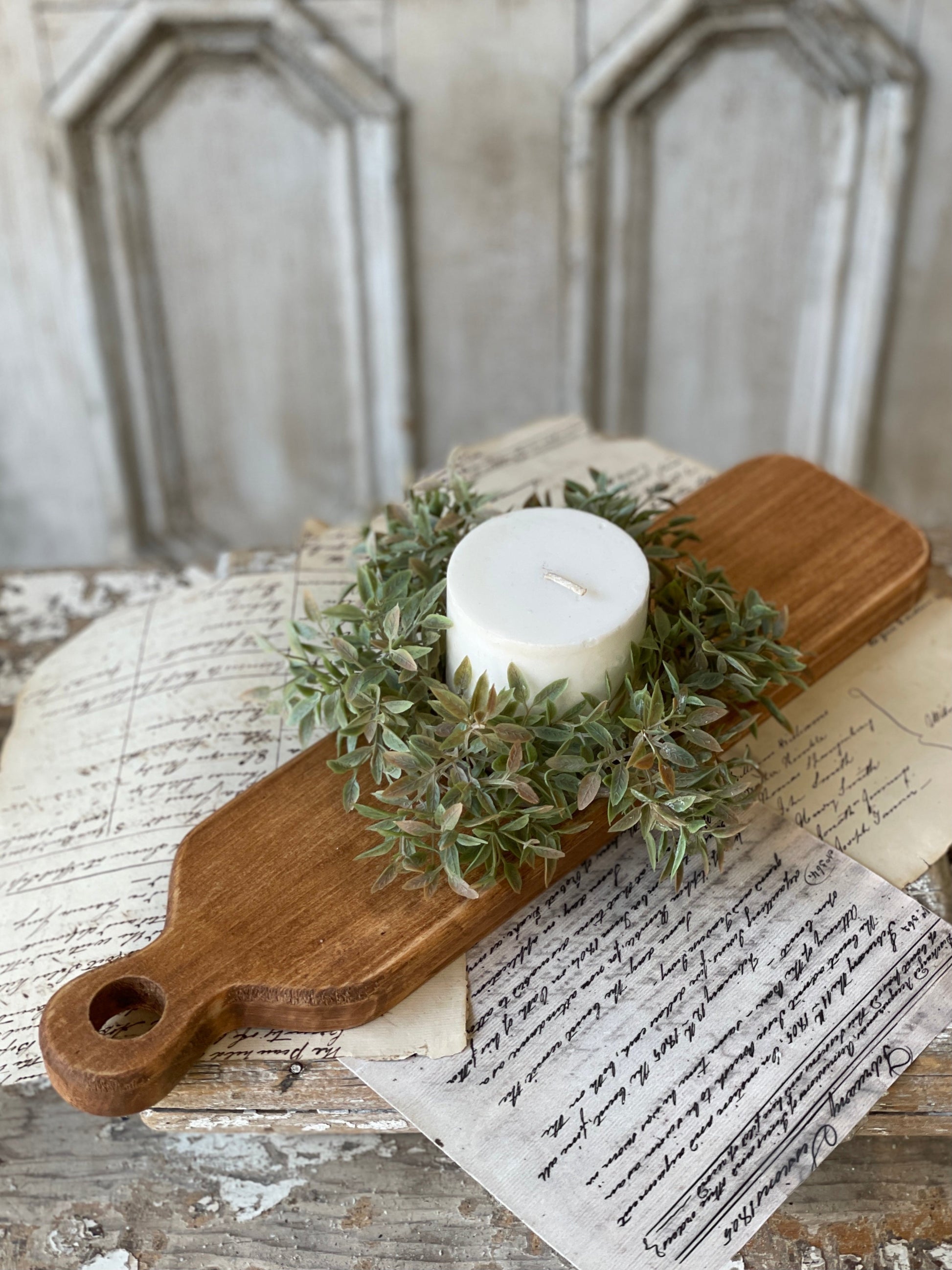 This distressed wooden plank is perfect for anchoring decor on shelves or tables. Decorative use only. 17 long, 4.25 wide.